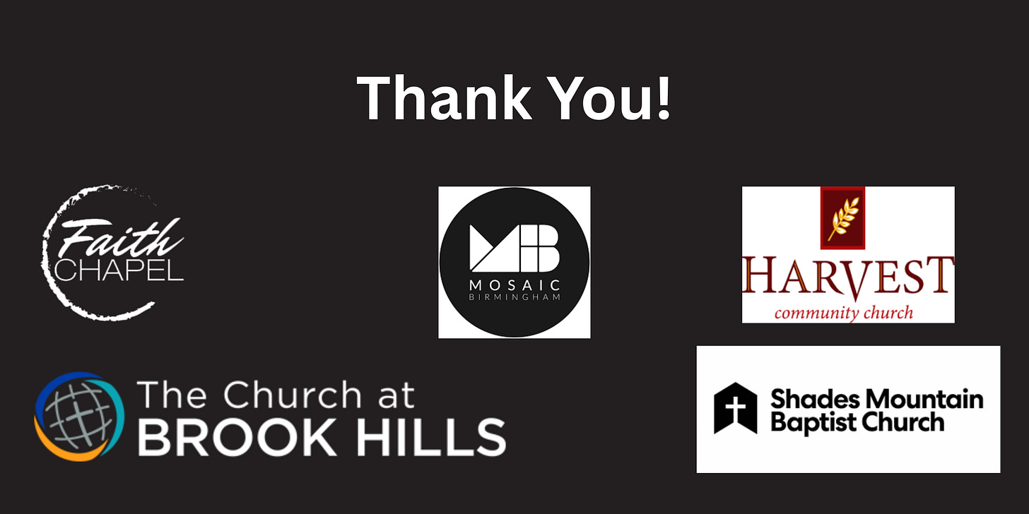 To our supporting churches—Faith Chapel, Harvest Community Church, Mosaic Birmingham, Shades Mountain Baptist Church, and Church at Brook Hills—your generosity helped us launch. Every dollar planted in Forged has borne fruit in the lives of men and women who are now leading differently in their homes, churches, and communities.